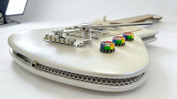 The Cosmophonic is our first product offering. It's a semi-hollow electric guitar that pays homage to one of the great inventors of the electric guitar era. Our process started with an offset guitar design inspired by jet-age optimism, when science would solve the world's problems and we would live on colonies in the stars. The contours echo those of the Zen On ZES 170, but with some decidedly next millennium innovations under the hood.
